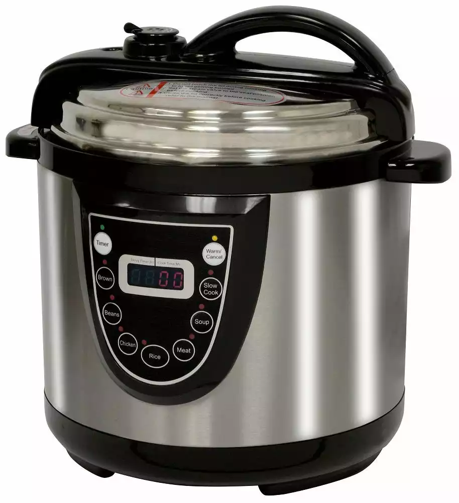 Make meals in less than half the usual time with the AmeriHome 6 Quart Pressure Cooker. This Electric Pressure Cooker doesn’t have the loud whistle you heard in your grandmother’s kitchen, and has features built into the design to make it safer and easier to use. The digital LED timer and display takes the guess work out of pressure cooking with preset functions for browning, beans, chicken, rice, meat and soup. You can even prep the meal before you leave the house in the morning, and come home to a hot and ready meal with the 9 hour delay start timer.