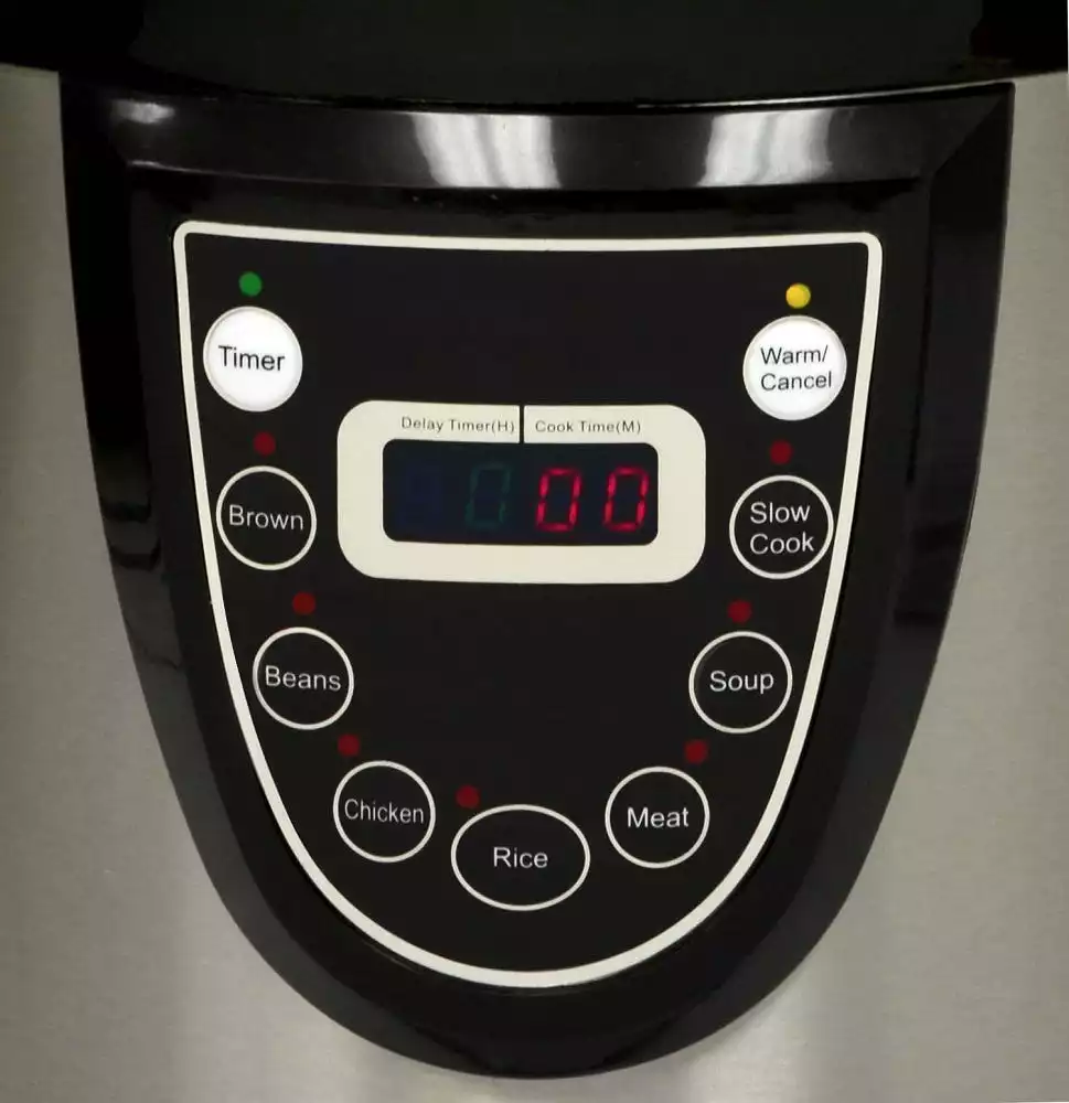 - Digital display with preset functions for browning, beans, chicken, rice, meat and soup