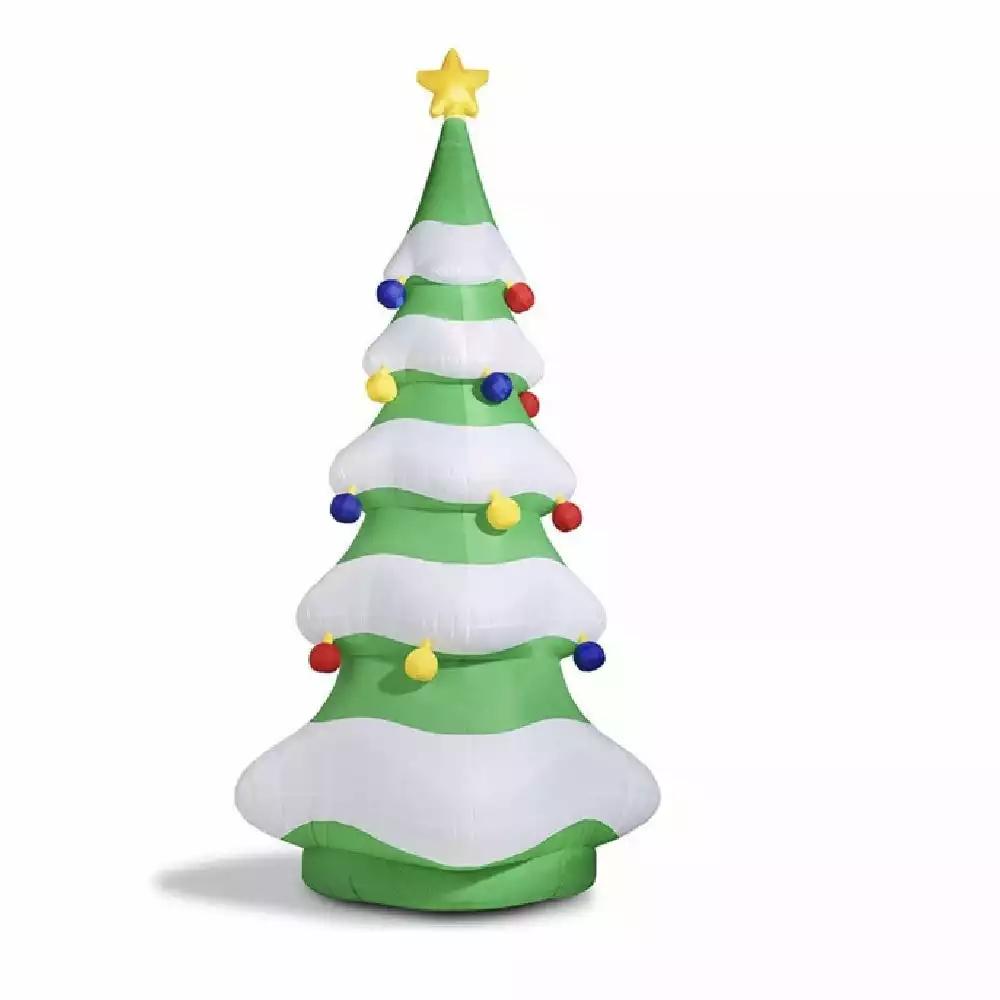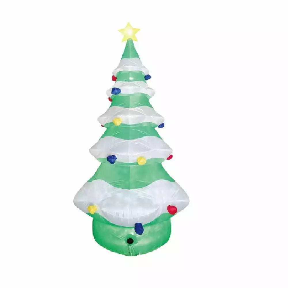 This is the 12′ inflatable Christmas tree that entertains kids and adults alike with a dazzling lightshow. An integrated air pump inflates the decoration in minutes while twinkling LEDs and disco-like LEDs inside produce a festive glow of moving light for carolers, holiday guests, and passersby. The tree is adorned with twinkling ornaments and topped with a star. Made of durable tear-resistant nylon, the tree remains in place via included stakes and tethers.