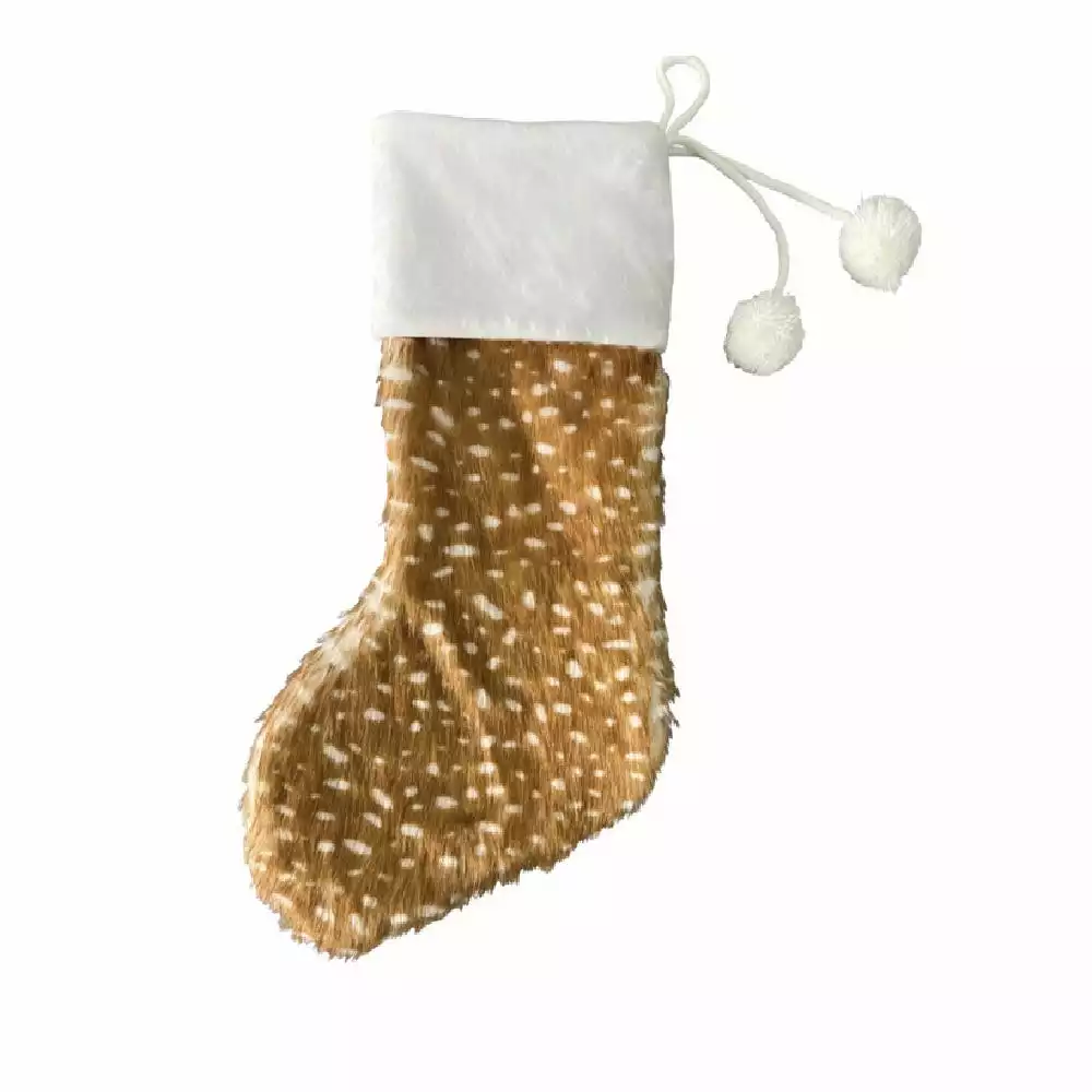 Hang the Deer Look Faux Fur Christmas Stocking every year to create Christmas memories that last a lifetime. Perfect for stuffing with presents, candy, cards, and other holiday surprises, this lovely Christmas stocking is designed in Deer Look Faux Fur and with Pom Poms. This stocking has a loop at the top for hanging over fireplaces or at the foot of a bed and measures 20″ to make it easy to fill it with the perfect amount of holiday cheer. The Stocking is sure to become a cherished holiday decoration that will put a smile on everyone’s face year after year.