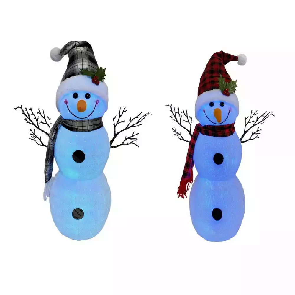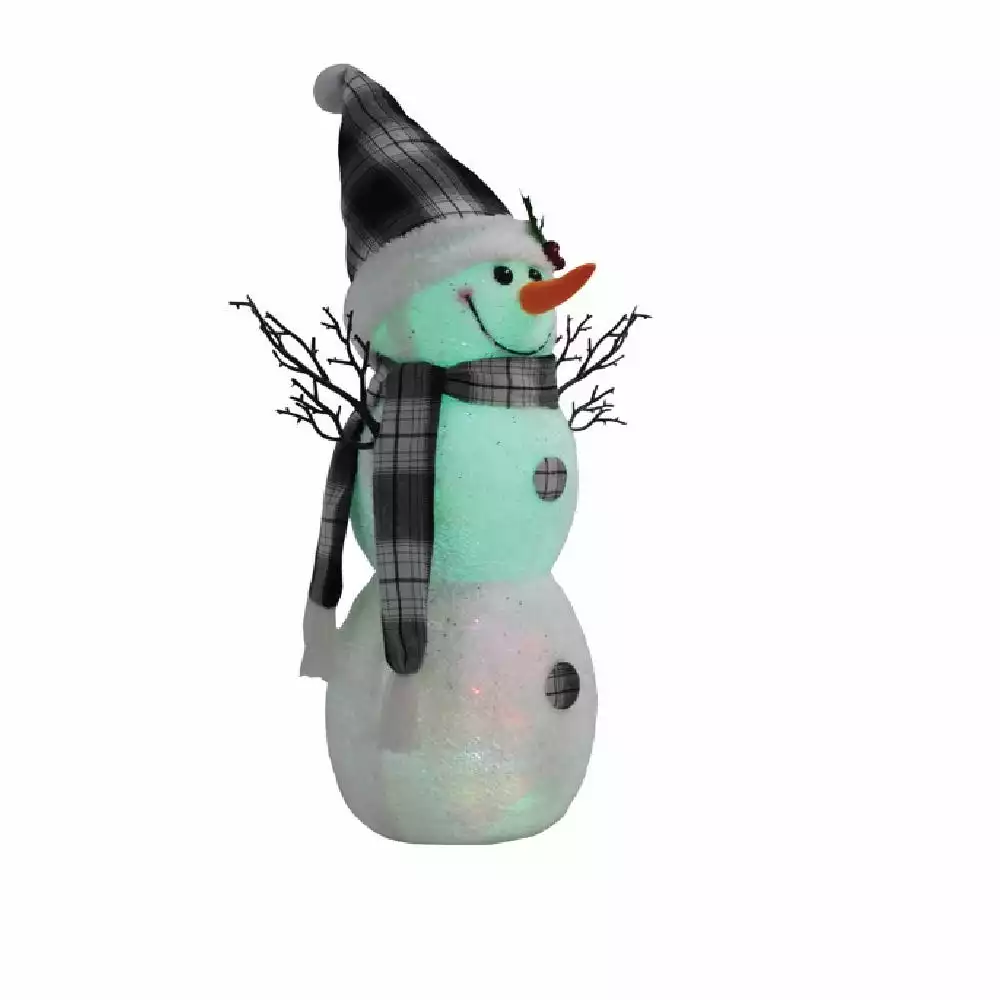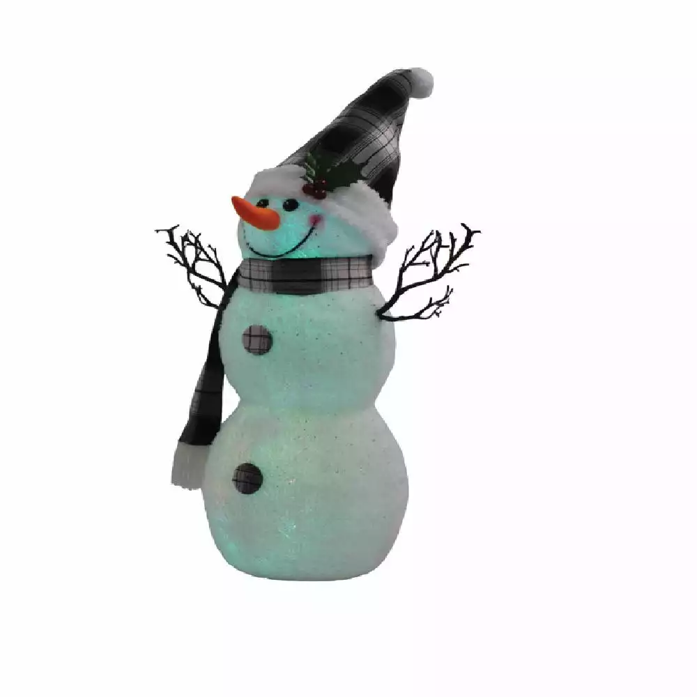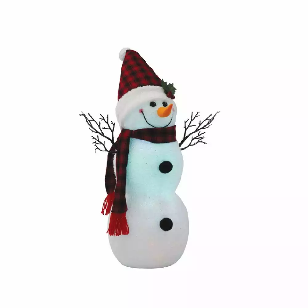 This Frosty snowman definitely has a jolly, happy soul! Make your very own winter wonderland with this battery operated, table top snowman Christmas decoration, with colour-changing LED. Ready for a snowball fight, this carrot-nosed cheeky chappy is pre-armed with snowball ammo and wrapped up warm with hat and scarf. This amazing decoration looks incredible when unlit, but really creates a show when switched on, as the 8 multicolour LEDs flash through the snowman’s fluffy body.Perfect placed on a table top as part of a seasonal centrepiece, this high quality decoration will be a real focal point within your display.