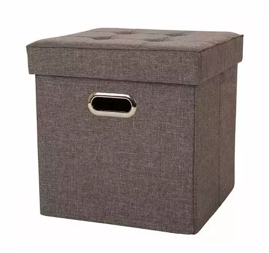 - This foldable storage ottoman is both a stylish and functional accent piece for any room’s decor. It acts as an ideal storage system, a comfortable seat and a useful place to rest your legs