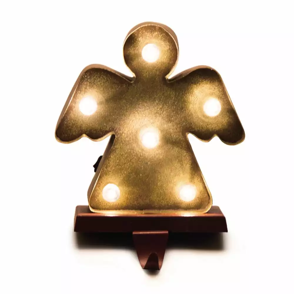 Simply light up the stocking holder with the switch on the side edge. It features marquee LED lighted on the top with an iron hook on the base. Made of durable metal, painted with bright color, for hanging your Christmas stockings.