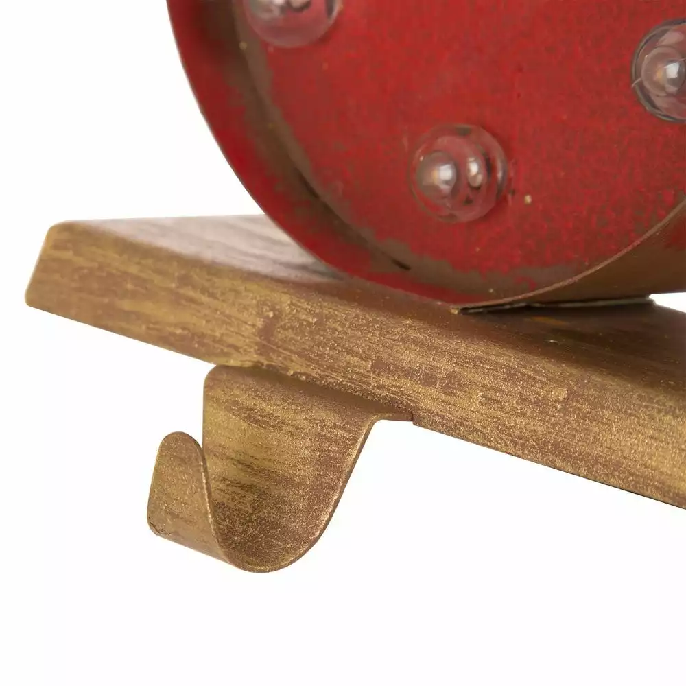 Simply light up the stocking holder with the switch on the side edge. It features marquee LED lighted on the top with an iron hook on the base. Made of durable metal, painted with bright colors, to hang your Christmas stockings.