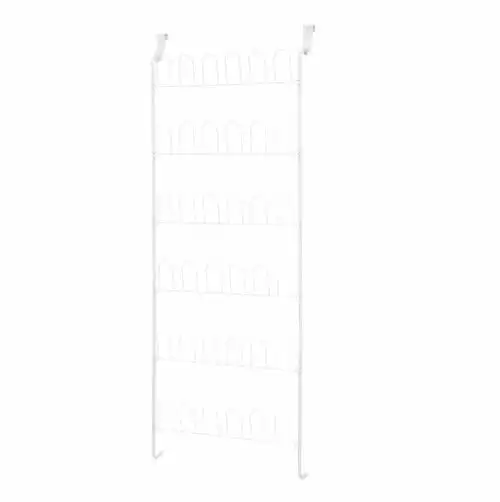 Honey-Can-Do SHO-01169 18 Pair Over-the-Door Shoe Rack. Space saving, over-the-door shoe rack eliminates closet floor clutter by neatly displaying up to 18 pair of shoes in an easily accessible format. The rack’s sturdy, rust-resistant steel frame hangs easily over any standard size door. Wire shoe forms help to hold the shape of your shoes while allowing some flexibility for varying styles and sizes.