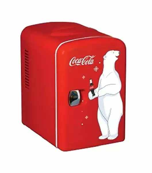 The Koolatron Coca-Cola Personal Cooler is the stylish and fun way to keep your drinks cold. The Coca-Cola Personal Cooler looks like a small refrigerator and is perfect for anywhere. The Coca-Cola Personal Fridge holds up to six 12 oz. cans of soda or beer.