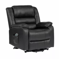 This faux leather polyester covered lift chair is perfect in any home. The wand-controlled Power Lift Recliner, with power lift and recline. This will ensure that people of all abilities and ages can have a great seat in their home. A side pocket keeps things close by and at arms reach. This chair is rated at 300 lbs. weight limit.