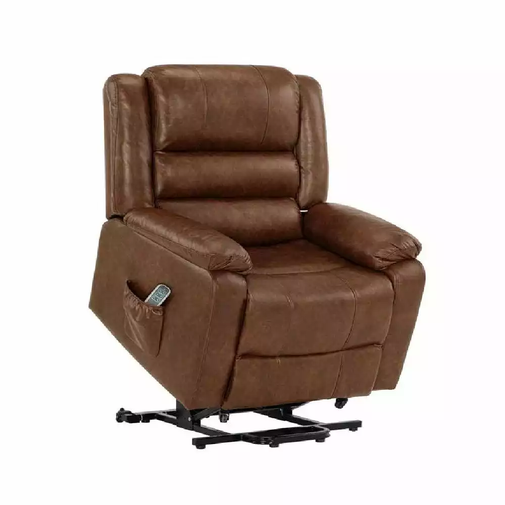 This faux leather polyester covered lift chair is perfect in any home. The wand-controlled Power Lift Recliner, with power lift and recline. This will ensure that people of all abilities and ages can have a great seat in their home. A side pocket keeps things close by and at arms reach. This chair is rated at 300 lbs. weight limit.