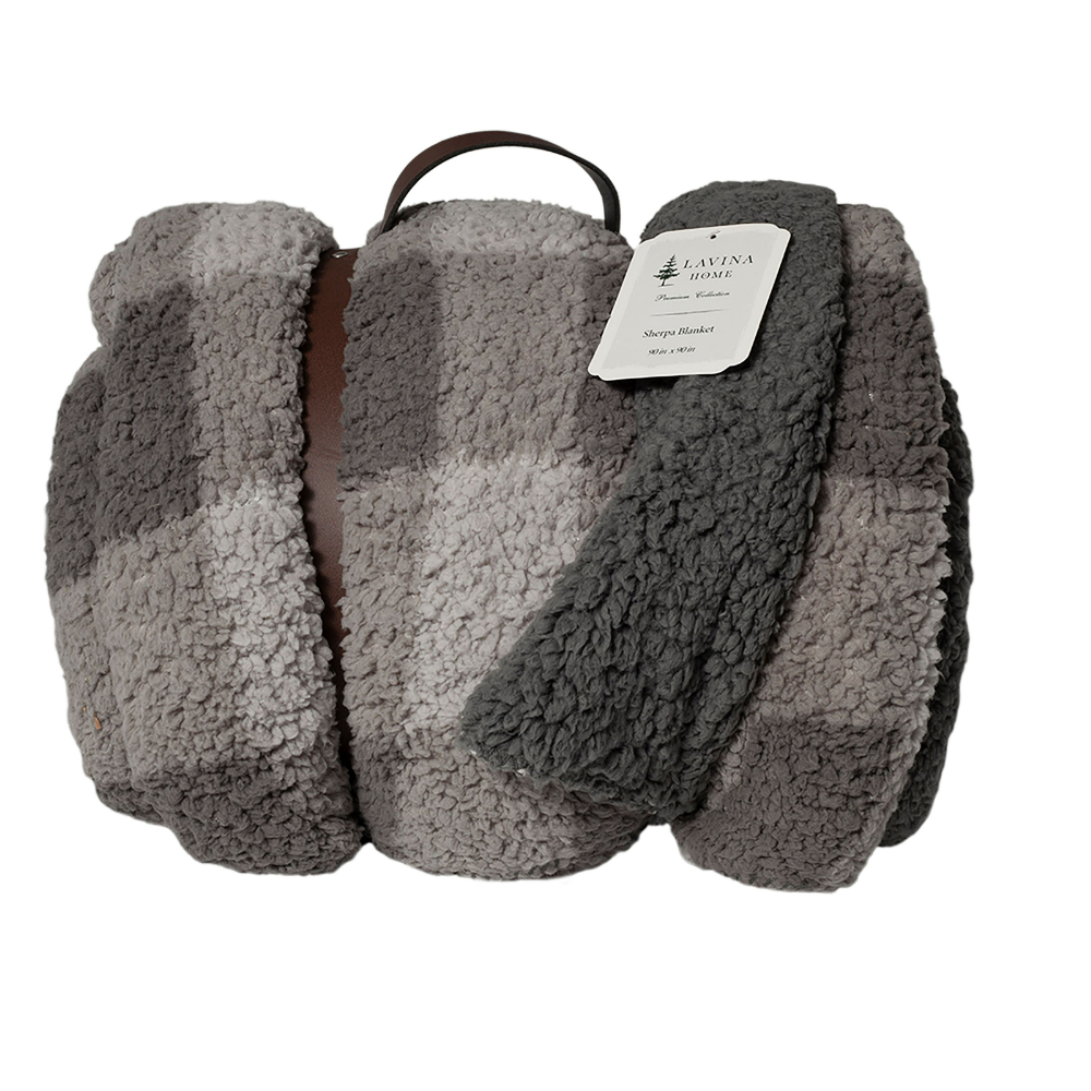 Lavina Home Grey Buffalo Check Printed Sherpa Reversible to Sherpa 90 x 90 Blanket – RK-SHERP-GBUF – Blankets & Bedspreads