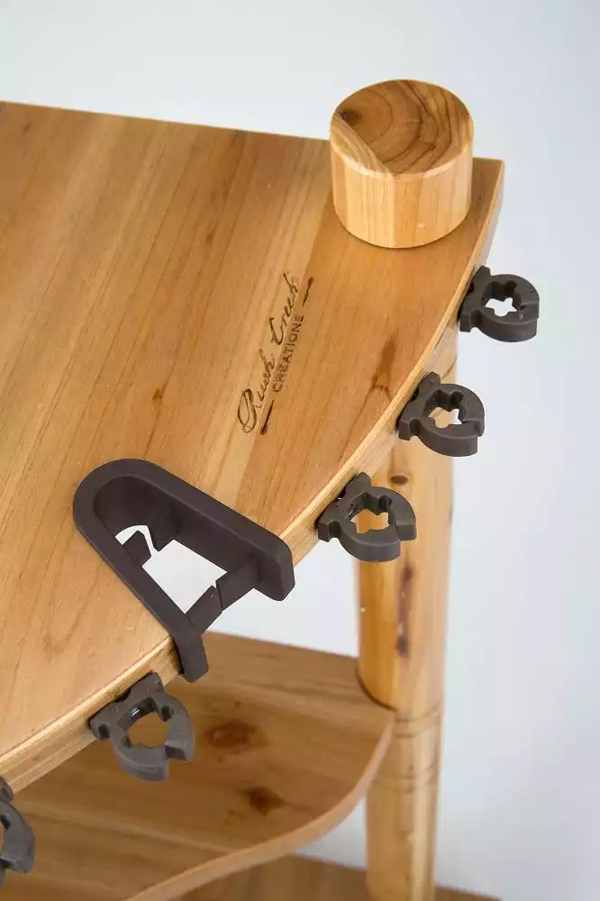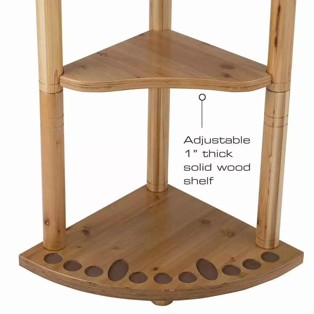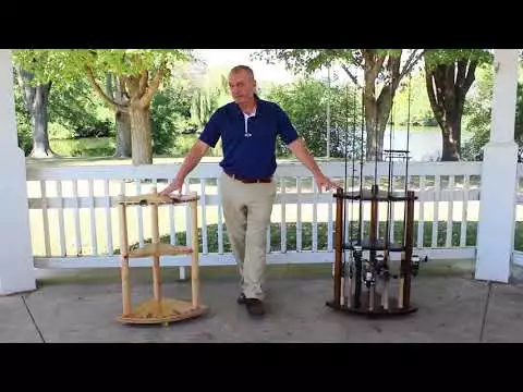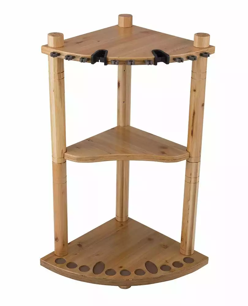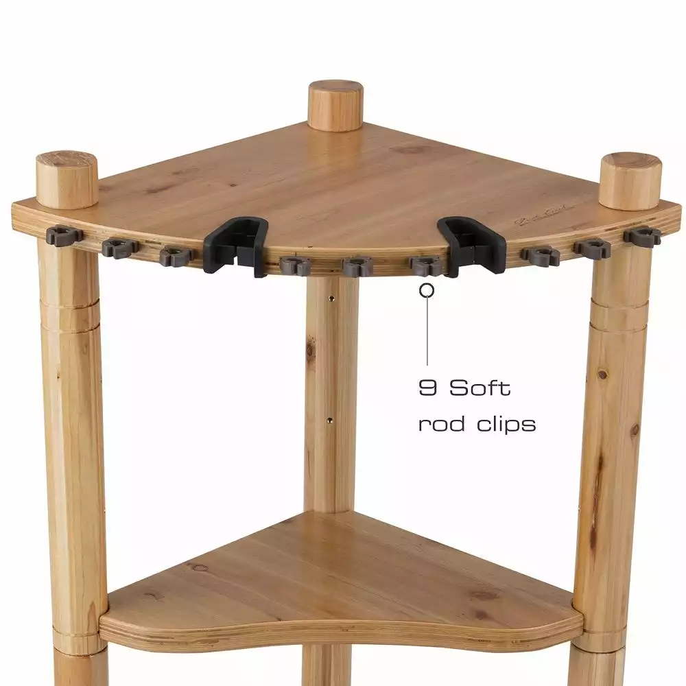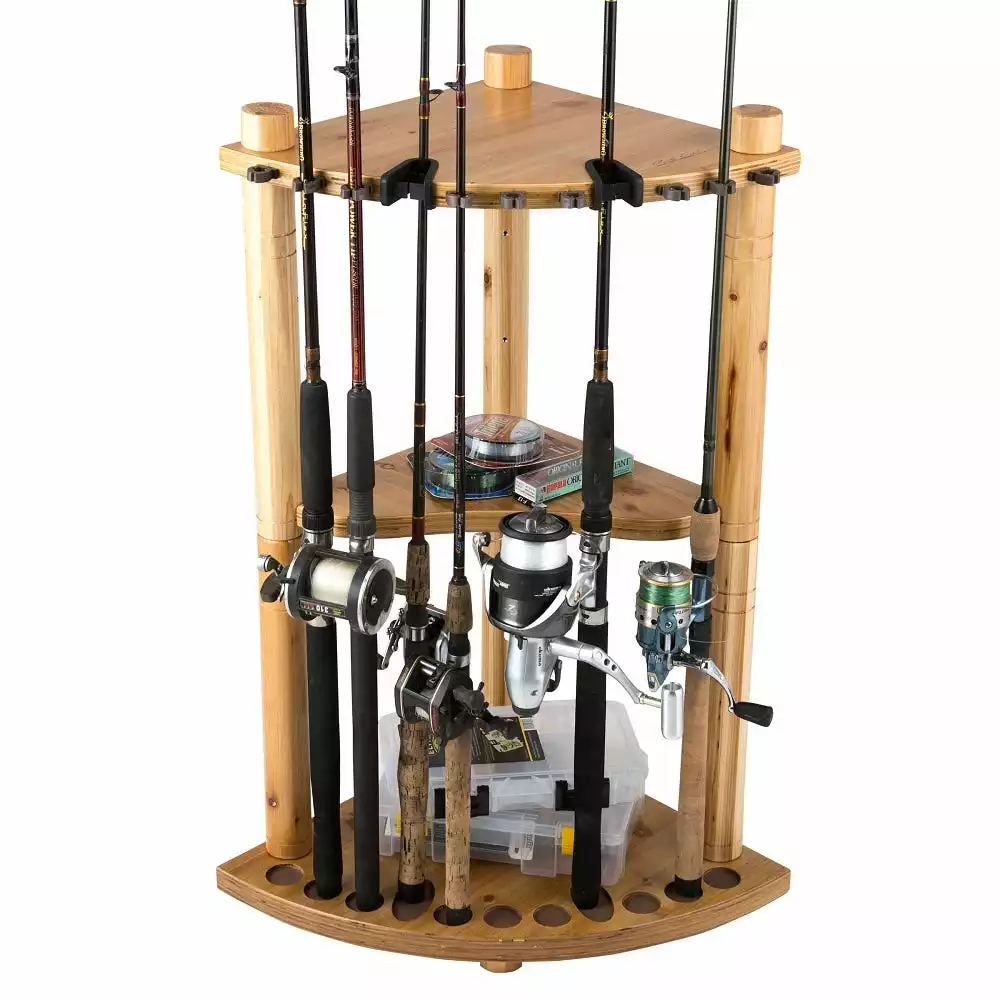 Cast your cares away! Those who are short on space, but big on style will love the way our 13-Rod Corner Rack perfectly fits the bill! Form meets function with quality distinctions like padded pole rests, accessory shelves. NEW dual rod technology and marine-grade/water-resistant finishes. This rack also comes with an extra adjustable storage shelf. Place one near the front door for grab-and-go convenience! The rack size is 17″ x 17″ x 33.5″.