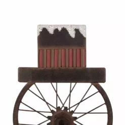 Glitzhome Metal Bike Wheel Snowman with Plaid Scarf Porch Decor – 1103203409 – Porch Seasonal Decor