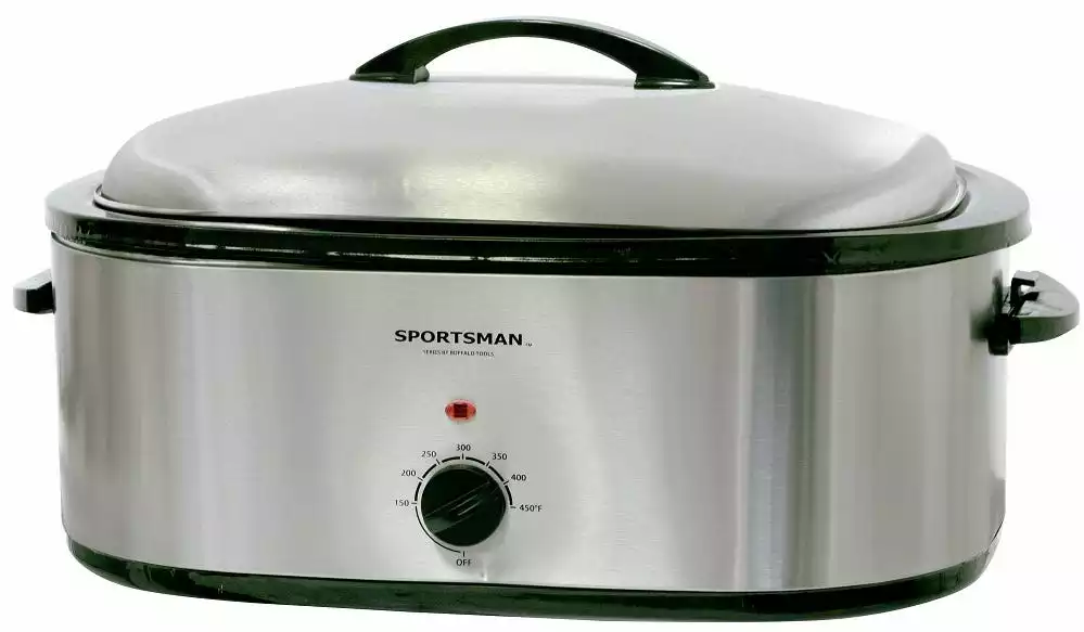 Free up space in the oven when cooking large meals with the Sportsman 18 Quart Roaster Oven. Cook large meals without heating up the kitchen during warm months. Use the Sportsman 18 Quart Roaster Oven for cooking and serving large families meals during holidays and reunions, potlucks, church groups and more.