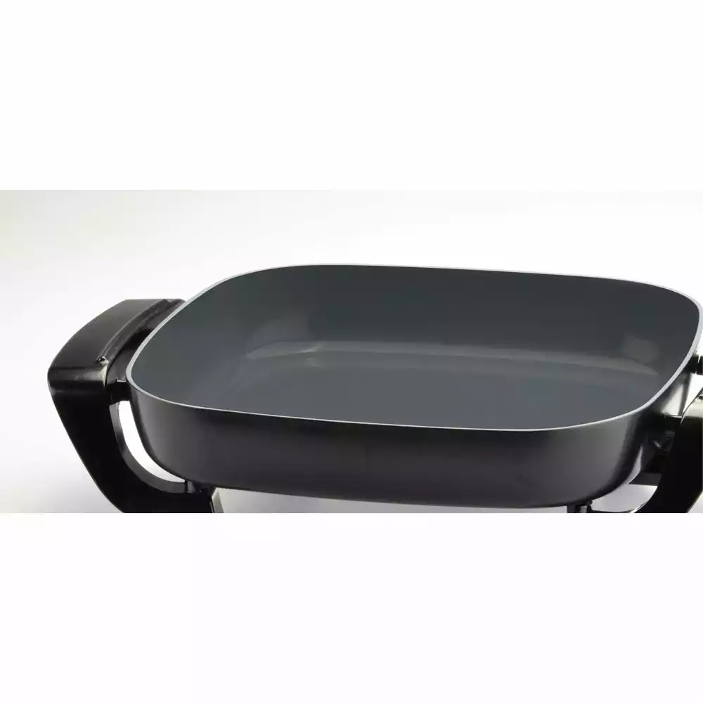 The Toastmaster 12″ Electric Skillet is the perfect, portable means for all of your browning, sautéing and cooking needs. The non-stick finish is the ideal choice in coatings. With 2″ high sidewalls, servings of meats and veggies can be cooked in a breeze. The adjustable temperature control ranges from a high searing, to a low simmer.