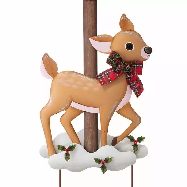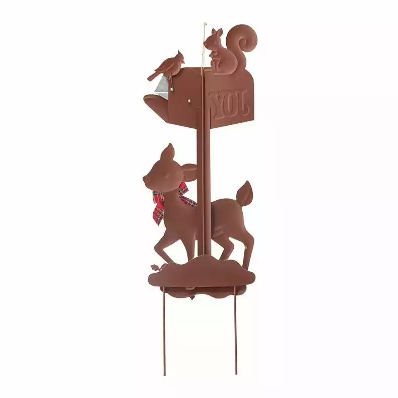 Make your home a little more festive for the holidays. These holiday mailbox stakes, accented with a squirrel ,reindeer, and cardinal are red or galvanized metal. Each stake is hand painted, powder-coated, and has a sturdy 2-pronged fork to secure the piece to the ground.