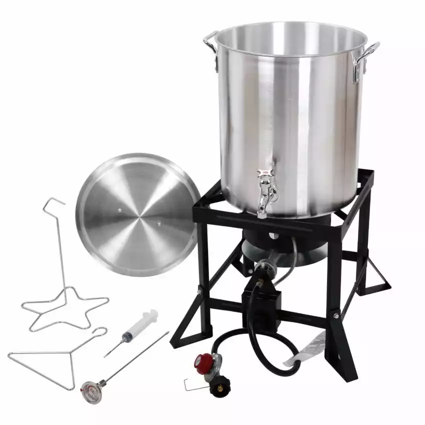 - 36-quart aluminum pot with lid fits up to a 22-pound turkey