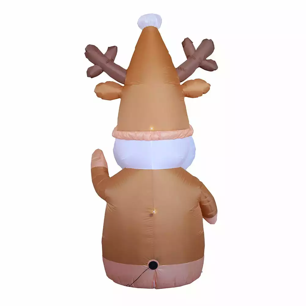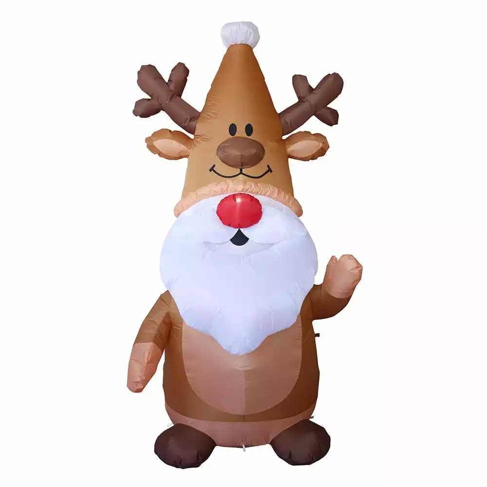 Add an adorable Christmas buddy to your traditional Santa and snowman seasonal yard décor with this lighted Inflatable Reindeer Gnome! This sweet holiday friend lights up at night for a fun festive outdoor display. Perfect decoration for your yard and is sure to entertain your guests and family!