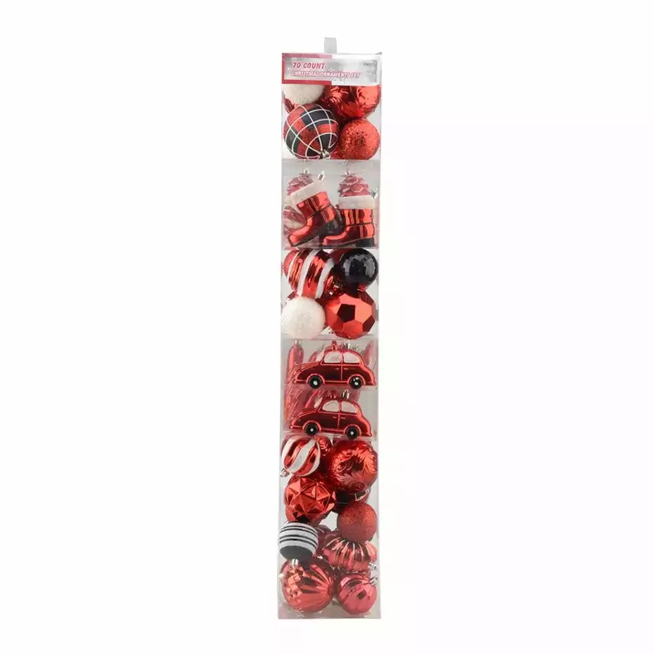 - Includes 70 Christmas ornaments