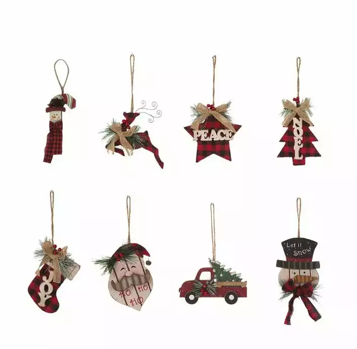 - The Christmas ornament is made of wooden and fabric, it’s handmade. It is available in eight styles to choose.