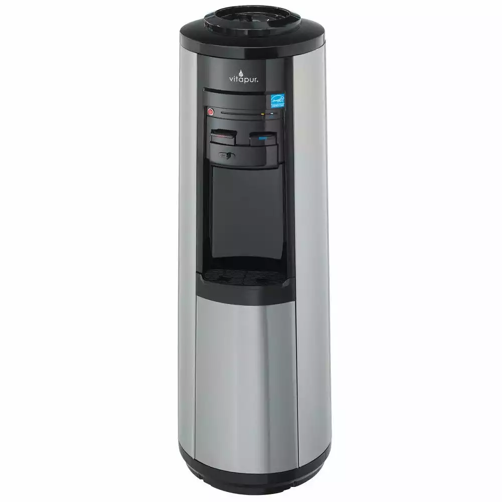This Vitapur full size water dispenser features a stainless steel cabinet that matches the decor of any high end kitchen. Todays most requested convenience features include: tri-temperature dispensing, an LED night light and stylish push button controls. Energy star rated, the patented kettle feature uses 70% less energy than traditional hot and cold water dispensers that heat water constantly. Compatible with Greenway & Vitapur water dispenser filtration systems.