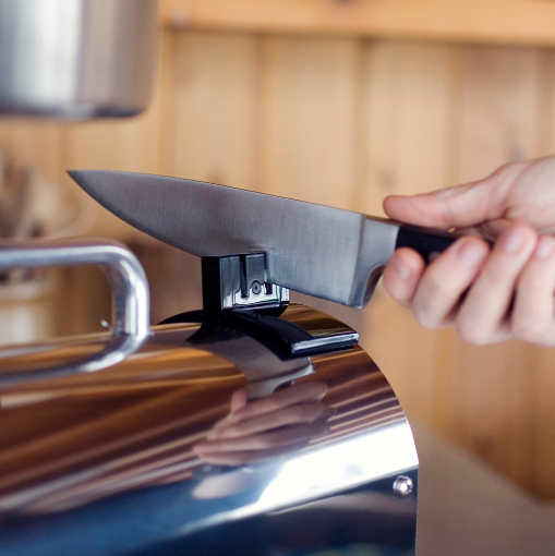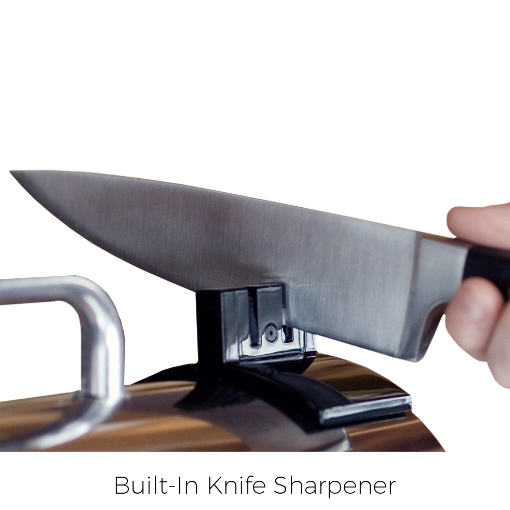- Built-In Knife Sharpener for sharpening your favorite butcher knife